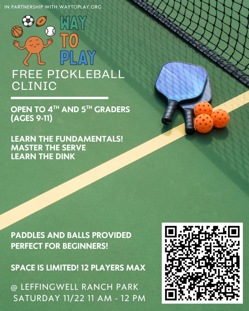 Way to Play is growing, and we are excited to announce our newest community sports clinic! We are partnering with our newest clinic director, Jonah Kim, to bring the fun and excitement of pickleball to 4th and 5th graders in the Whittier/La Habra area.