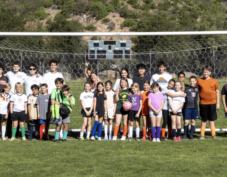 Down on Thacher’s upper field, the soccer clinic was hosted by Mia Gaona 27′ and Catherine Feira 25′. Mia and Catherine have had a strong impact on Thacher’s Girls’ Varsity Soccer team.